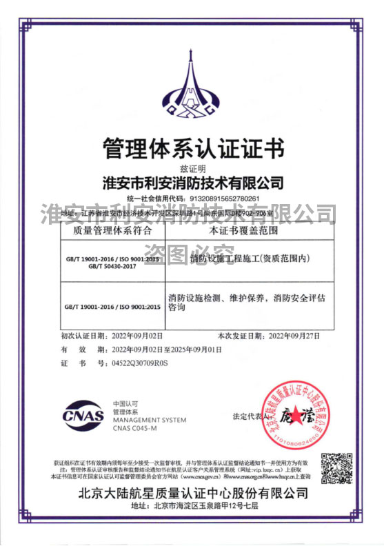 您好,欢迎访问淮安市利安消防技术有限公司官方网站!